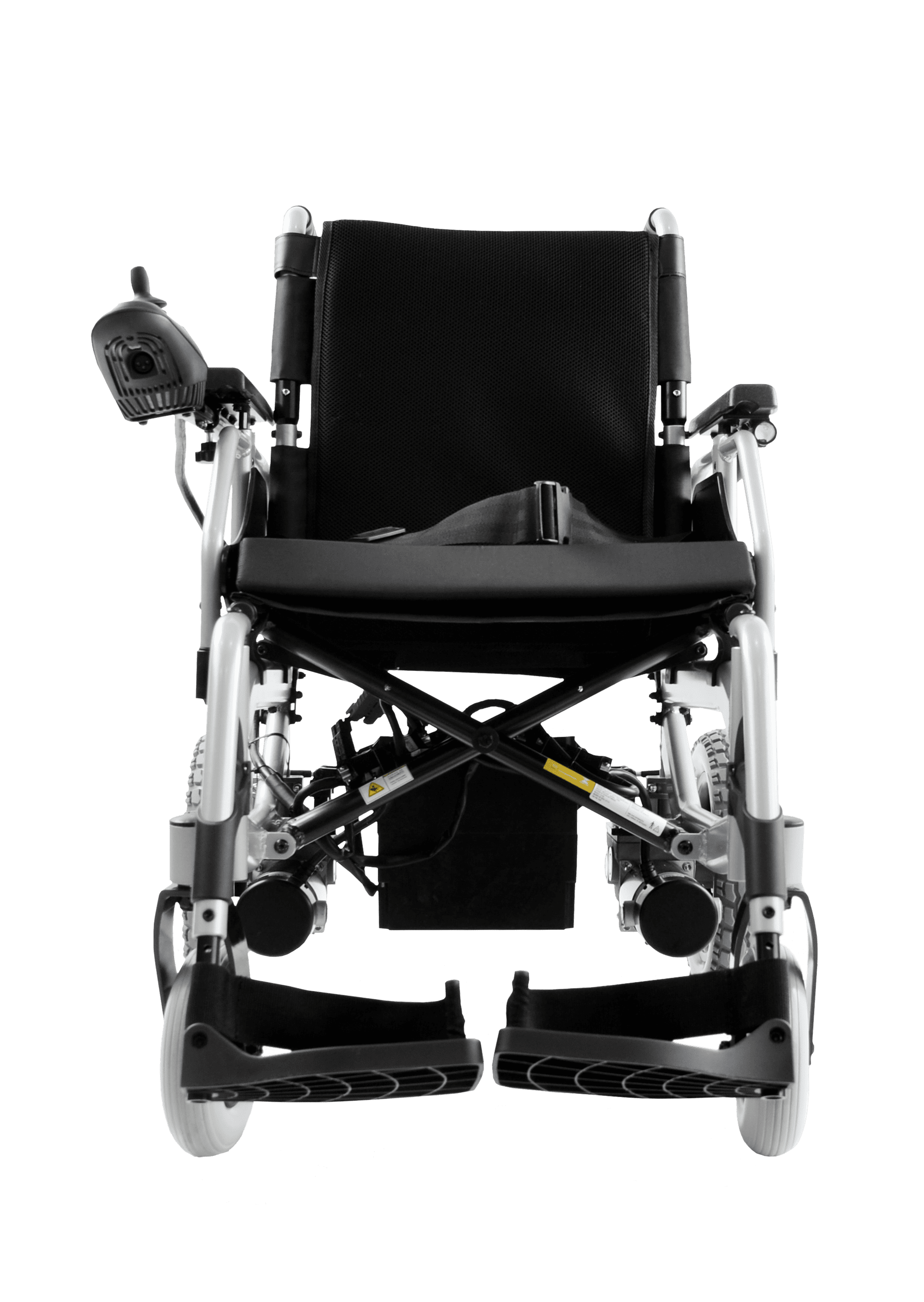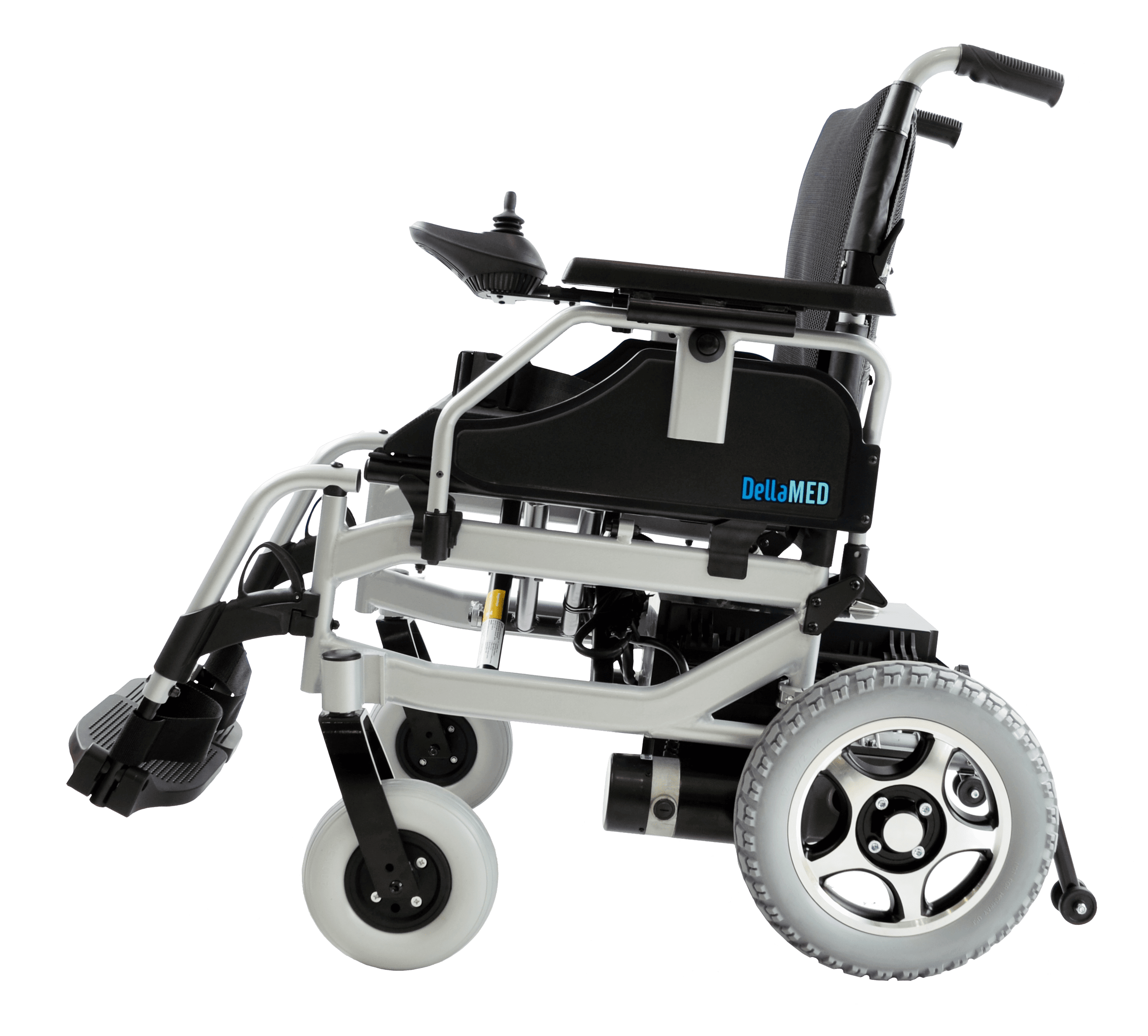 A cadeira motorizada D1000 Dellamed possui estrutura em alumínio e duplo X que garante leveza e resistência. Com bateria recarregável e removível.