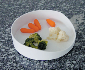 Feito de melamina, tem um diâmetro de 20 cm e a borda lateral com a altura variando de 3 cm a 1,3 cm (recorte). Não vai ao micro-ondas.