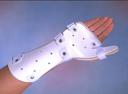 Indicações: Fraturas, tenossinovite de "De Quervain", entorses, contusões, artroses e reeducação articular na artrite rematópide do polegar, imobilização isolada do polegar.