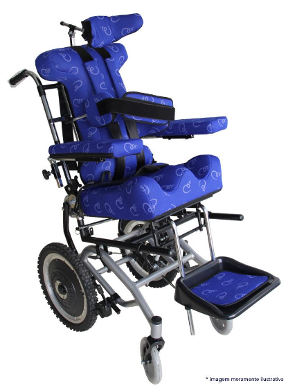 - Cinto Pélvico em V acoplado ao assento, para o posicionamento e alinhamento adequado do quadril;